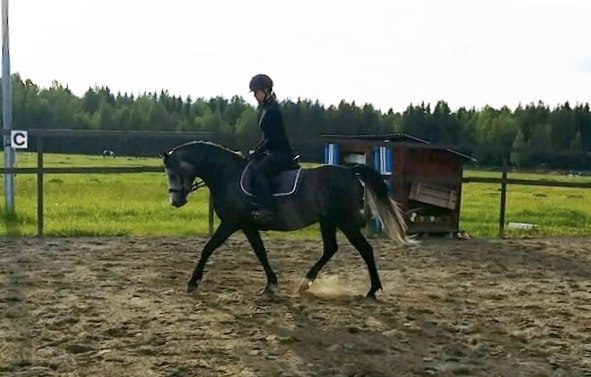Men inte protesterade Galishimo över lite rappare tag! Han blev djupt koncentrerad och tyckte det var jätteroligt att gå från halt till en frisk trav. Han blev så taggad att det här med att göra halt inte alls var särskilt kul. Så han stod och trampade för att ladda inför traven som han snabbt lärde sig skulle komma...