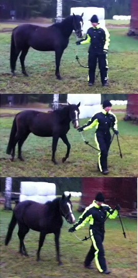 Sedan köpte jag faktiskt en dyr Uhip-kappa för en massa pengar, som jag tänkte skulle ersätta overallen. Den ser ju betydligt värdigare ut. Men tyvärr. Den gjorde inte grejen. Jag kliver ofta av och på Galishimo, särskilt på uteritter. Kommer det något som kan oroa Galishimo, en skoter, skidåkare, älgar, bilar, då sitter jag oftast av. Och det är omständligt och bökigt att sitta upp och av ute, med en lång kappa. Det prasslar, det stramar, det fastnar, benknäppena lossnar. Jag tappar lite fokus från det som är viktigast att göra, det vill säga en trygg uppsittning. Den kappan har varit till salu i omgångar men jag har nog bestämt mig för att behålla den ändå, Galishimo blir ju tryggare och upp-och-avsittningarna blir ju färre. Den går ju åtminstone använda på kortare turer eller på vinterridbanan.