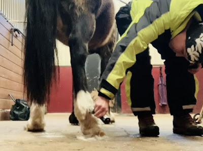 Så han vankade runt ett tag, och backade några gånger, innan han ställde sig stilla och accepterade övningen. Ibland är han en vankare. Han kan stå och väva i boxen, eller gå av och an när han är uppbunden om han är ensam i stallet. Det går lite upp och ned med vankandet. Jag korrigerar inte det särskilt mycket då jag tänker att han kommer att sluta när han blir vuxen. Han har ju inte ens fyllt tre ännu. Han är bara en bäbis. Jag försöker påminna mig om det.